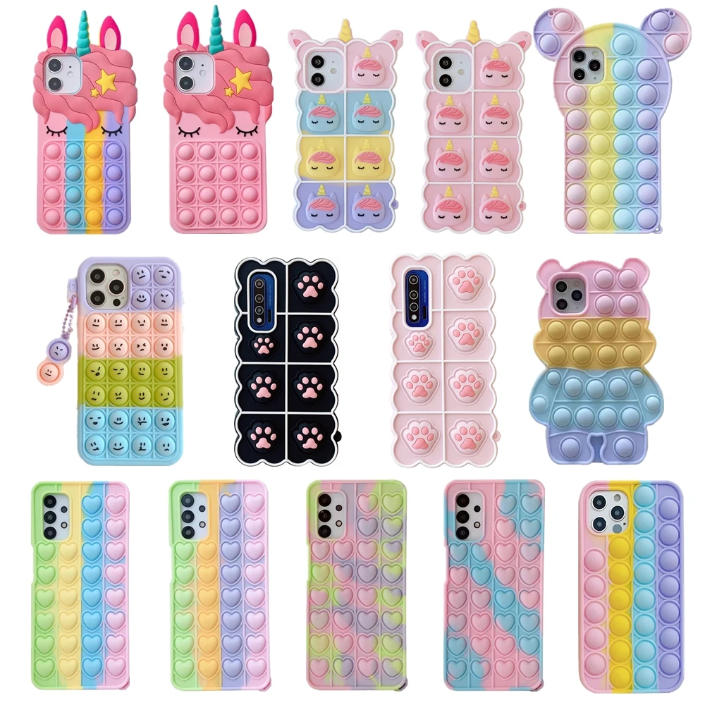 Pop Bubble Fidget Toys Case For Samsung Galaxy S21 S20 Fe S10 S9 Plus Note 9 10 20 Ultra 5g Rainbow Beans Cartoon Unicorn Cover Mobile Phone Cases Covers Aliexpress